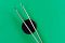 Чтобы определить направление и полярность магнитного поля, у нас есть специальный детектор магнитного поля. Маленький ферритовый магнит закреплен в стабилизирующемся подвесе. Попадая в магнитное поле, магнитик вращается и указывает направление. Совсем как стрелка компаса.