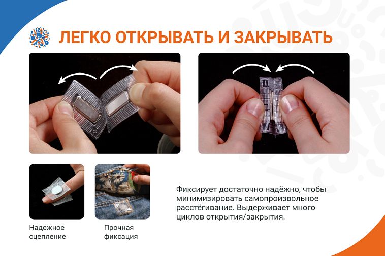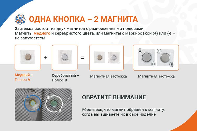 Одна такая кнопка состоит из двух застёжек, которые магнитятся попарно.